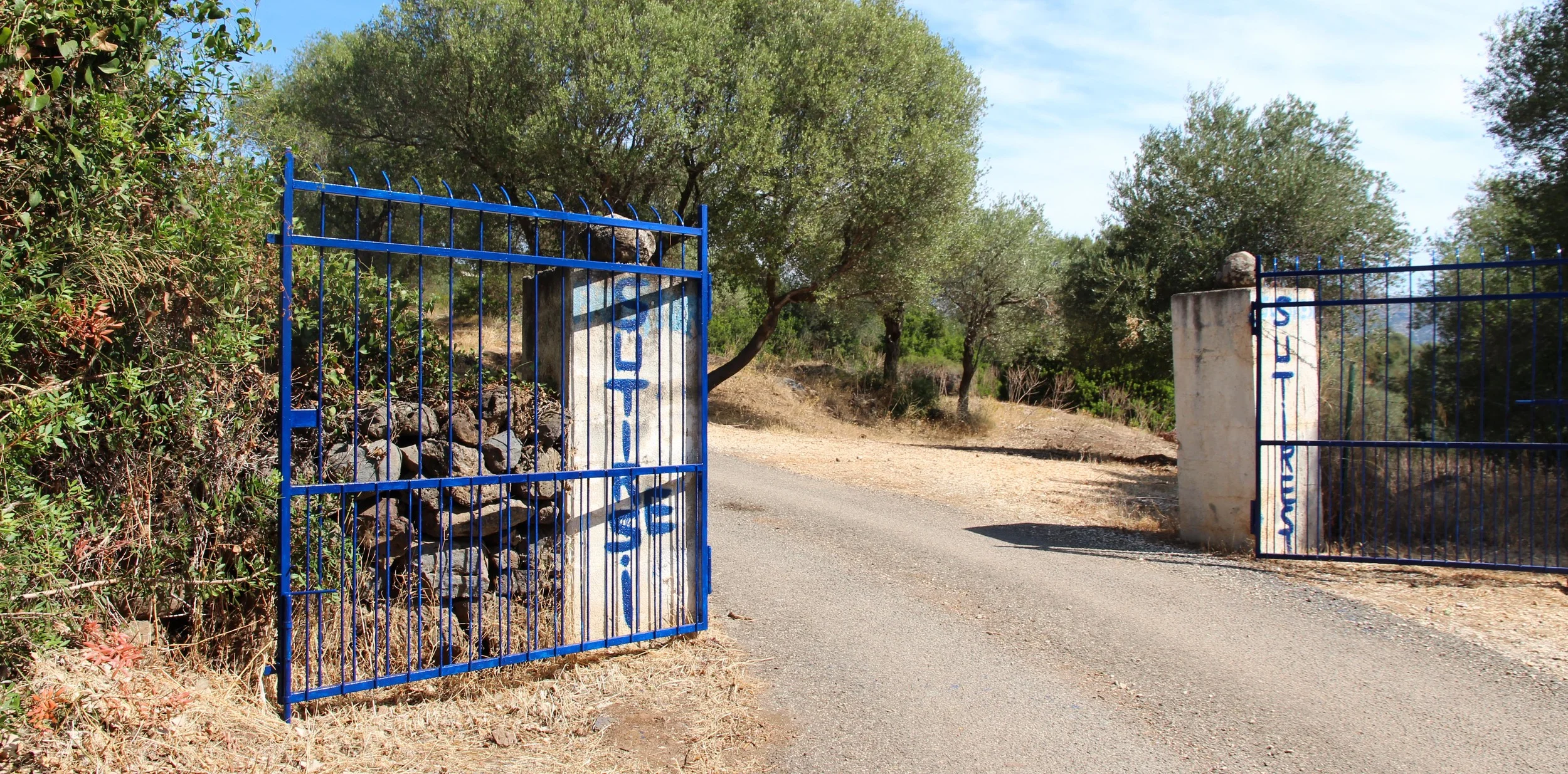 As we pulled in to the driveway, we weren’t really sure what to expect. We approached the gates which had dribbling, blue spray paint scrawled with the words ‘Su Tiresi’, the name of the agristurismo. We noticed that someone had accidentally left out a 'e' on one side and had ‘very discretely’ amended their error. Not a great first impression.